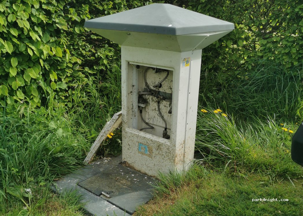 borne coupée à ce jour. jolie endroit pour éventuellement dormir. pas vu de vidange eaux grises.