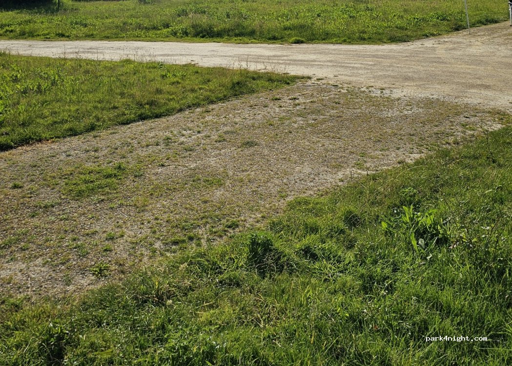 une aire comme ont aimerait en voir partout , grandes parcelles , bien délimitées , graviers et herbes , propre , très calme , avec tout inclus , caméra , poubelles , borne de paiement qui vous indique comment procéder et tout ça pour 9€ , bravo