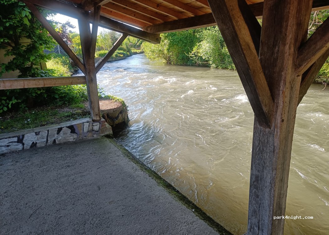 Nous y avons passé la nuit, endroit calme avec une rivière et un lavoir à proximité. Il y a également une boulangerie et un café à 50 mètres.
