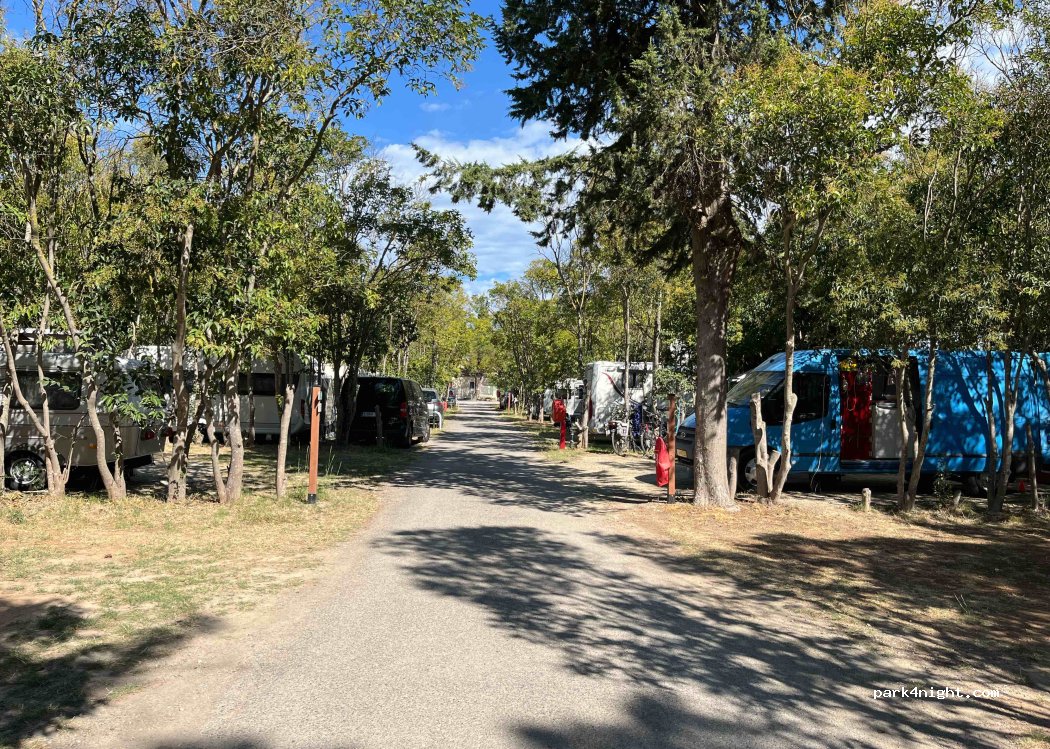 Très bon accueil, les parcelles sont grandes et plates séparées par des haies.Les sanitaires sont ok. Il y a tout les services eau noire eau grise.Il y a un Snack.Le centre ville est à 600 mètres à pieds. L'étang de Thau est à 2 kms, il y a une piste cyclable.Prix pour 1 fourgon, 1 personne et électricité : 22,86€