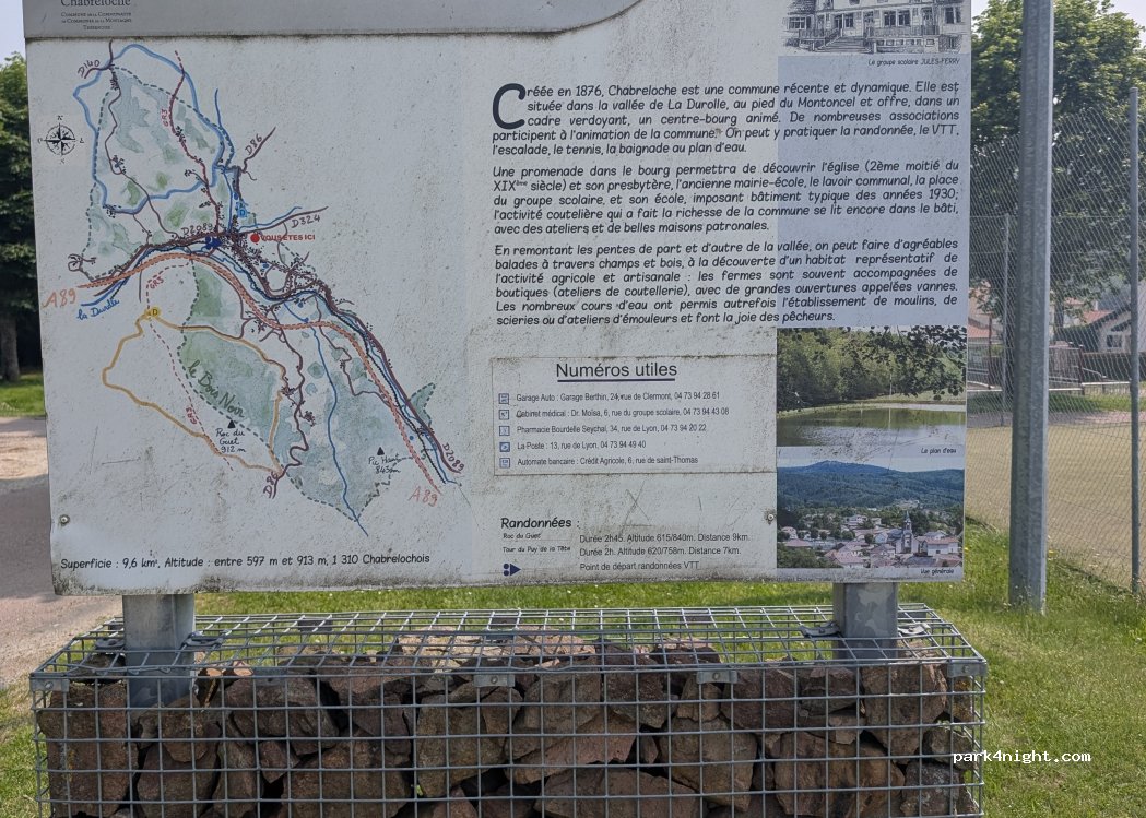 Merci a la commune de Chabreloche et ses partenaires pour la mise a disposition de cette aire de service pour CC. Propre et facile d acces près du cimetière. nous sommes mi novembre et l eau est toujours ouverte.