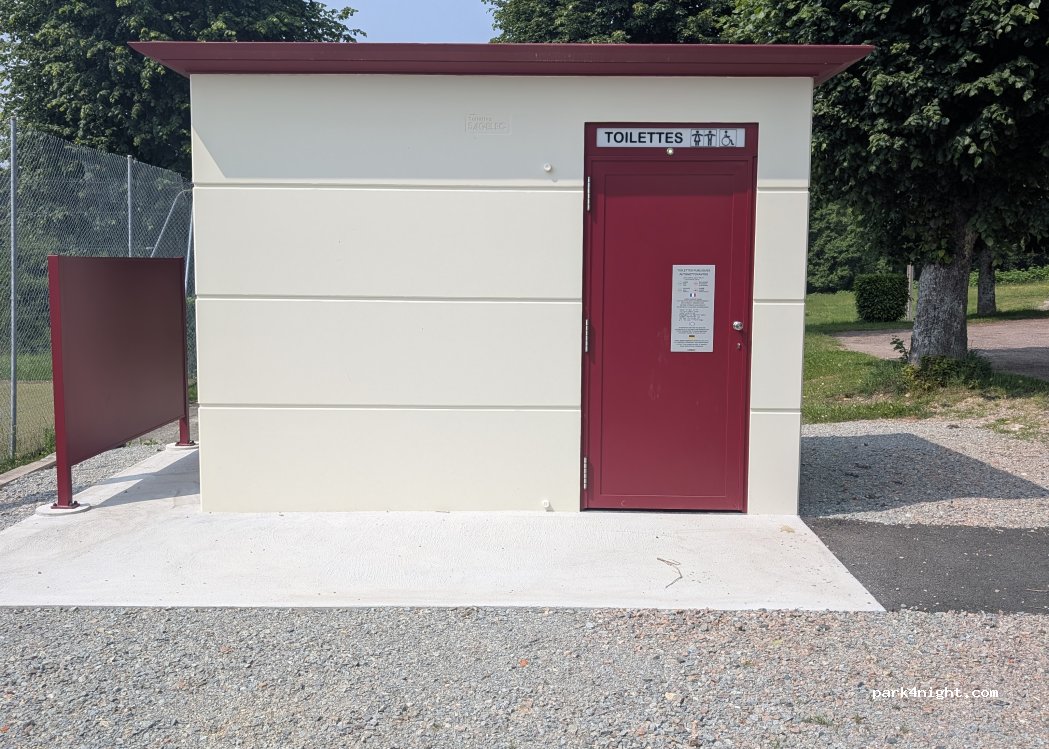 Services basiques mais très bien. Également 2 robinets extérieurs avec filetage le long du cimetière si bésoin. Possibilité de se stationner la nuit. A part la cloche de l’église nuit très calme. Boulangerie et supérette ouverts le dimanche a 300m