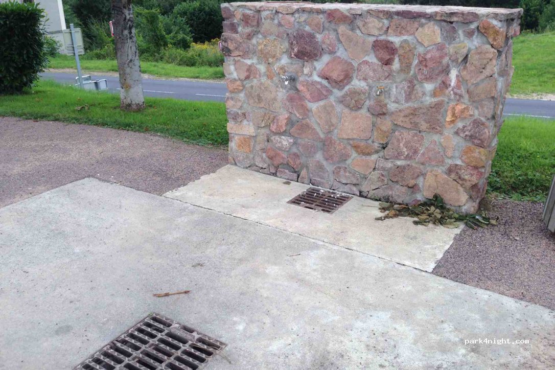 L'aire se trouve en hauteur par rapport à la route. L'accès est trop pentu, le crochet d'attelage de mon intégral touche beaucoup le bitume. La cassette des wc chimiques se vident sur la grille dont les fentes mesurent deux centimètres. Résultat tout ne passe pas ! Aire conçu par des personnes qui ne sont pas camping-cariste.