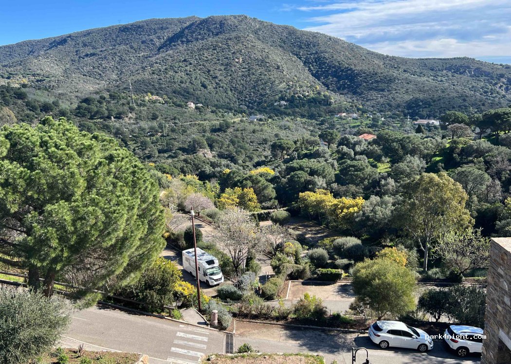 Après avoir été désespéré par tout les parkings limités en hauteur au Lavandou, des agents municipaux nous ont gentiment indiqué ce parking sans limite de hauteur et gratuit, pente raide donc attention à la remontée, idéal pour se balader dans la vieille ville de Bormes les Mimosas