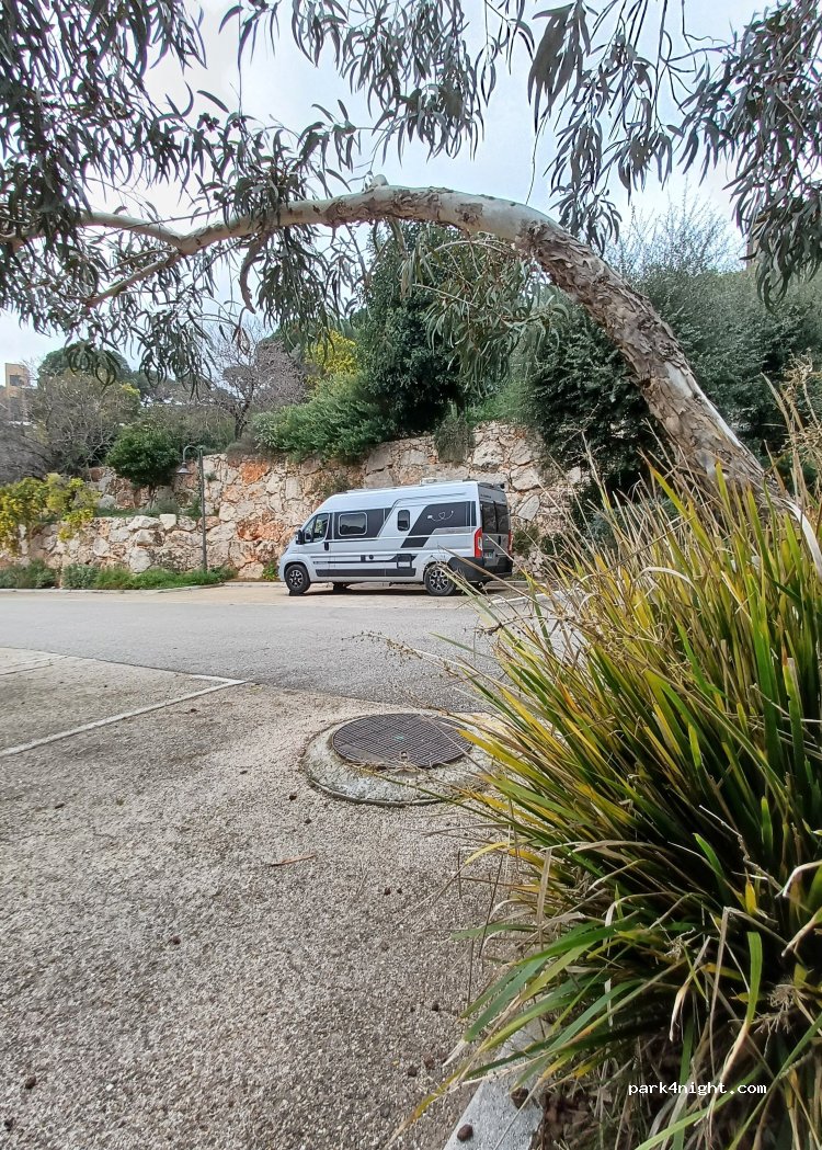 Caravan parking at the end of the steeply sloped way. 24 hours allowed. Very quiet.