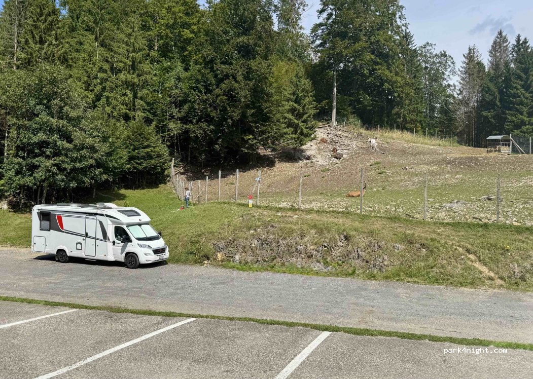 Stay at Juraparc! As a visitor to the Juraparc zoo or restaurant, you are very welcome to spend the night there on an extra mobile home site (near the deer enclosure). Wolves, bears, bison, deer, children's zoo, playground, good restaurant with bison steaks in the middle of the Swiss Jura. Route de la Vallée de Joux 3, 1337 Vallorbe
