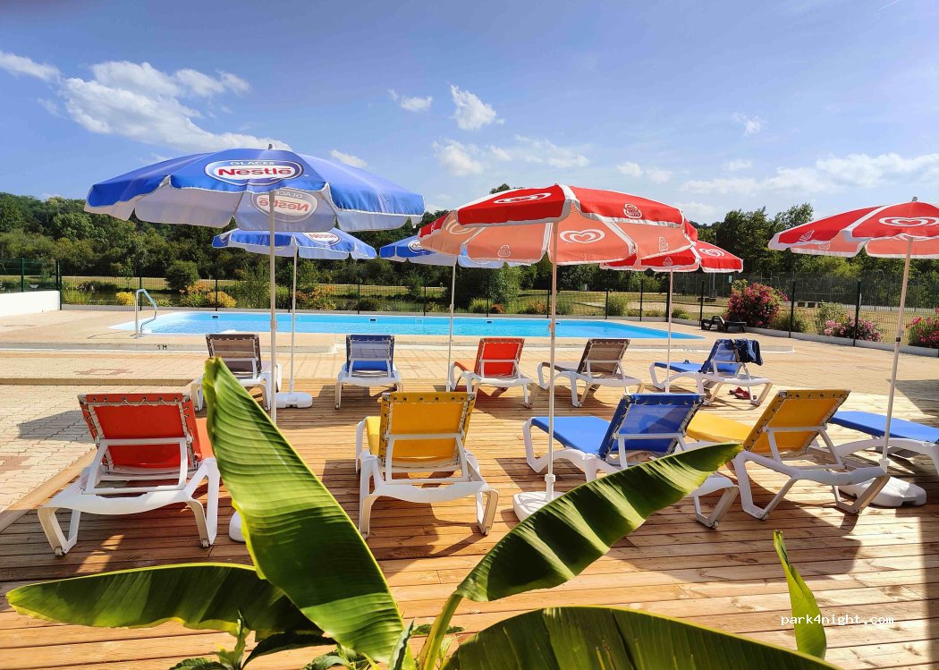 Petit camping très agréable, bien ombragé et surtout d une propreté exceptionnelle ! Tarif pour une nuit 2 pers avec un petit chien sans elec 19,90€. Parfait pour une halte le long de la N10. Piscine non testée car il faisait frais…