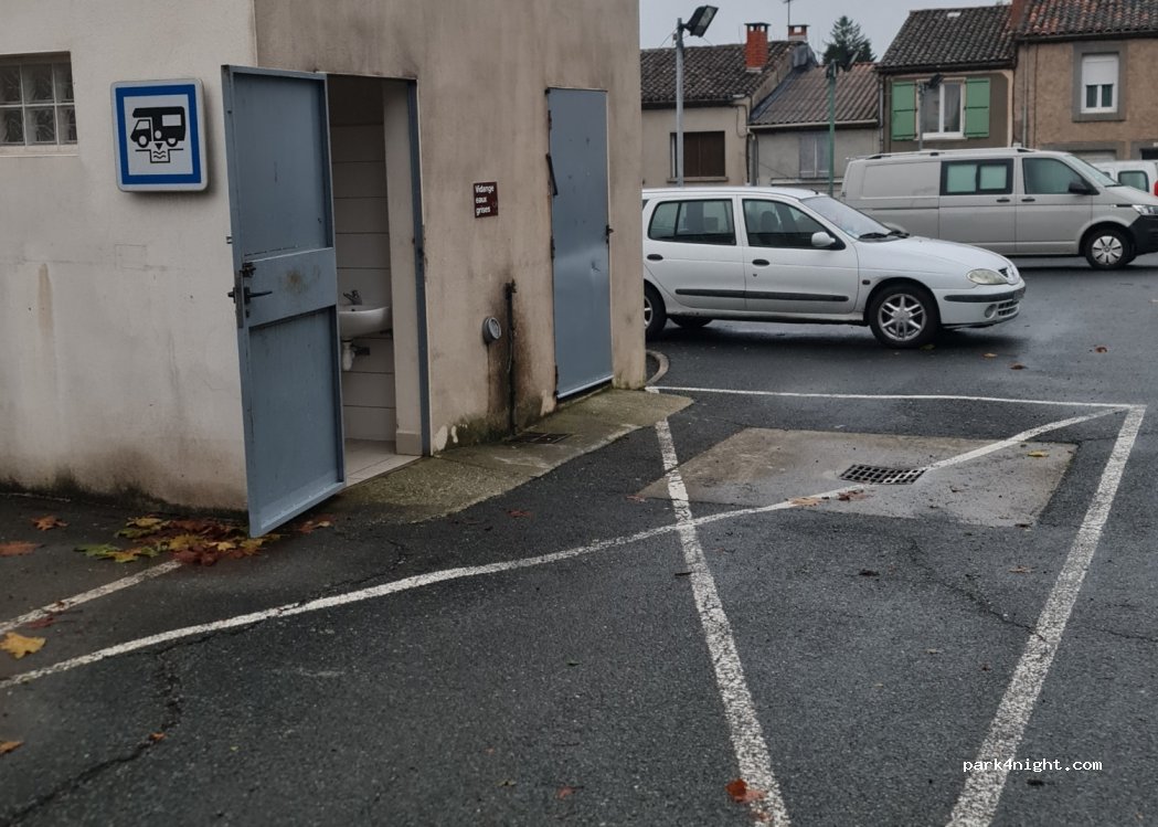 Vidange eaux grises et 2 toilettes à disposition. prises électriques en face des toilettes. Ne pas se garer en face du poste de secours (c'est là que c'est le plus plat) car à 5h du matin quelques commerces se font livrer, ça peut réveiller. Boulanger, primeurs et boucher très agréables avec des produits locaux. une halte sympathique pour la nuit. Merci la municipalité.
