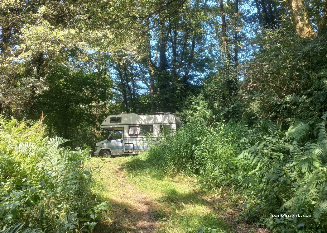 un chouette spot, je me suis enfoncée dans le chemin au fond du parking ( je suis en CC avec capucine ), c'était le spot parfait : bord de rivière, sous les arbres,l'endroit parfait pour une nuit tranquille. Par contre le train passe très proche, mais pas souvent. il y a de la place pour 2 véhicules