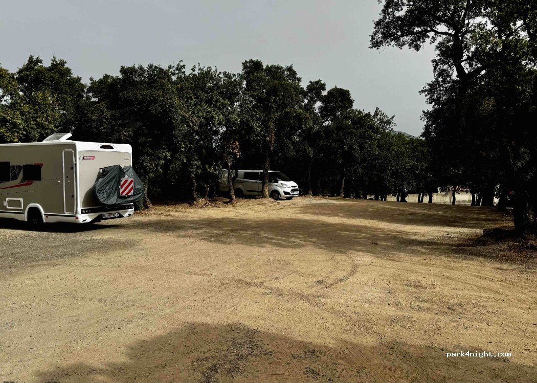 Grand parking stable, légèrement en pente, certains endroits de niveau. Beau vieux village classé parmi les plus beaux villages de France. Itinéraires de randonnée. Toilettes à 75 mètres. Panorama grandiose sur baie de Saint Tropez, Port Grimaud. Calme hors saison.