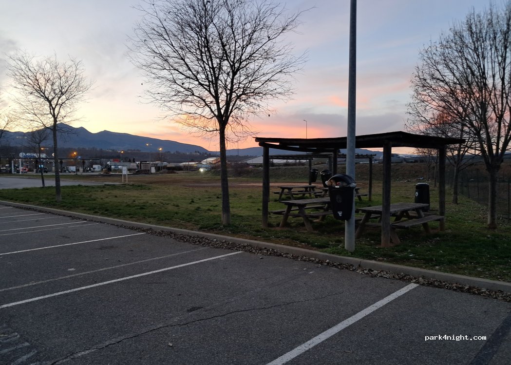 très bien pour une pause , grand emplacement pour camping car et table a l'ombre ou au soleil, mais beaucoup trop de bruit la nuit.