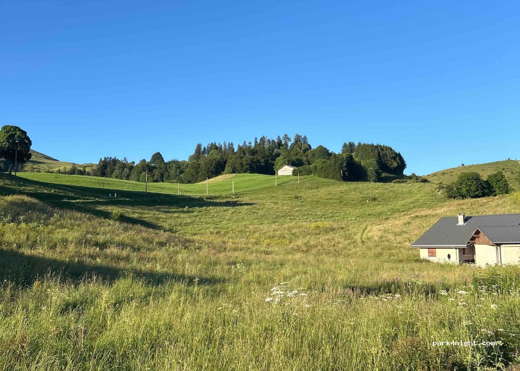 Amplio aparcamiento llano y asfaltado frente a los centros de esquí de fondo de Plaines Joux. Buenas caminatas cercanas.