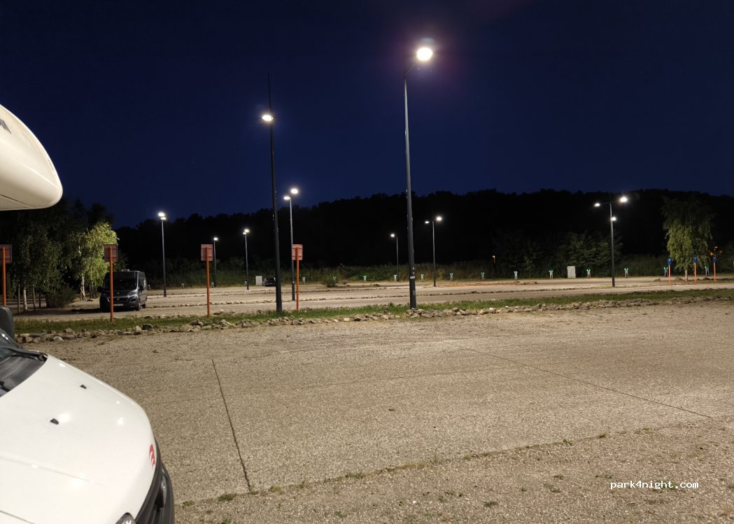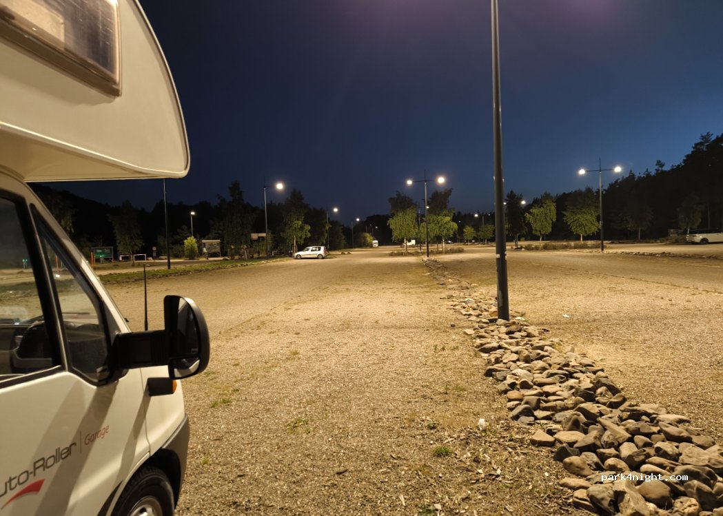 Énorme parking. Pas mal de promenades à proximité. Center parc flambant neuf également . Pas mal de circulation jusque 22-23h sur le parking. Nuit calme. Nous n’avons pas été ennuyé.