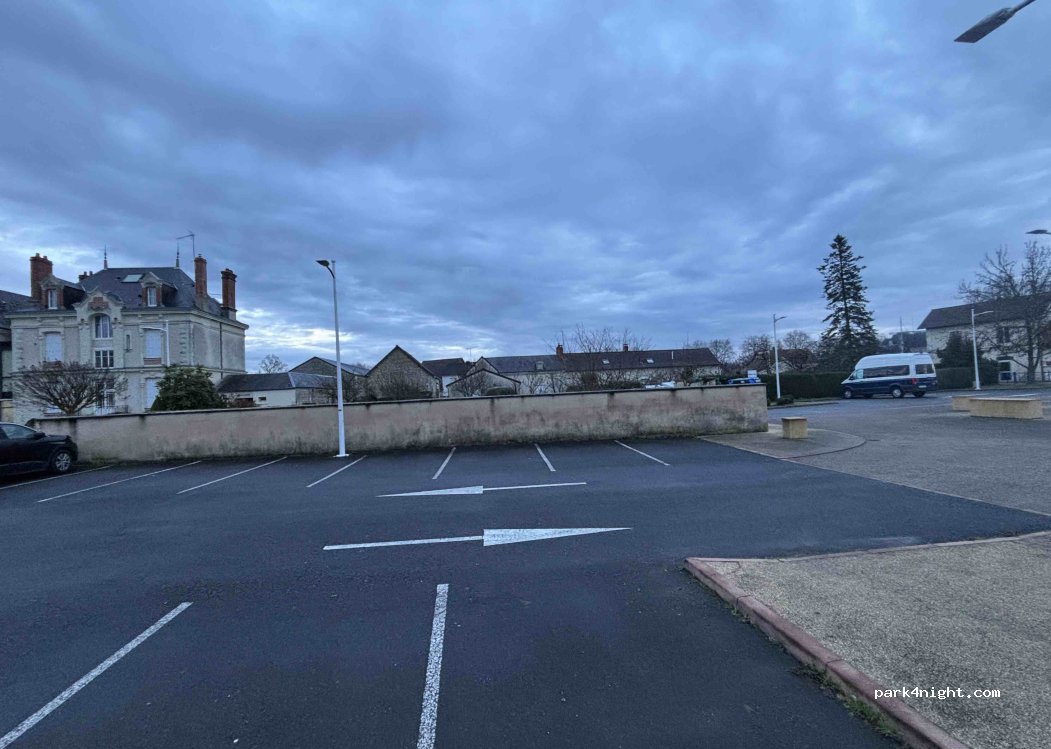 Free parking, quiet between the town hall and the school in a region where for the moment few places are indicated