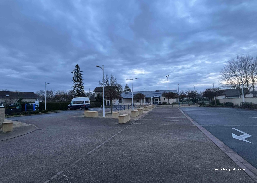 pas du tout adapté aux camping car, ce sont des emplacements de voitures donc niveau longueur ça ne passe pas sauf pour les fourgons, nous avons trouvé juste 1 place sur tout le parking où il y avait de l'espace derrière pour pouvoir faire dépasser le camping car et ne pas trop déborder sur la route