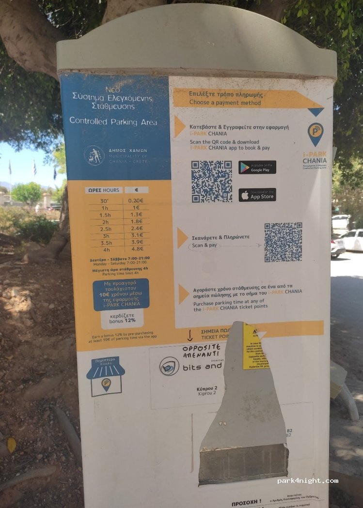 Free paid parking day or night. Choose to park where they are not locked up when the parking lot is full at night when it is free. The best under the tree entering to the left or to the bottom. Good parking to visit the city. The two closest to the port are difficult to access for ACs