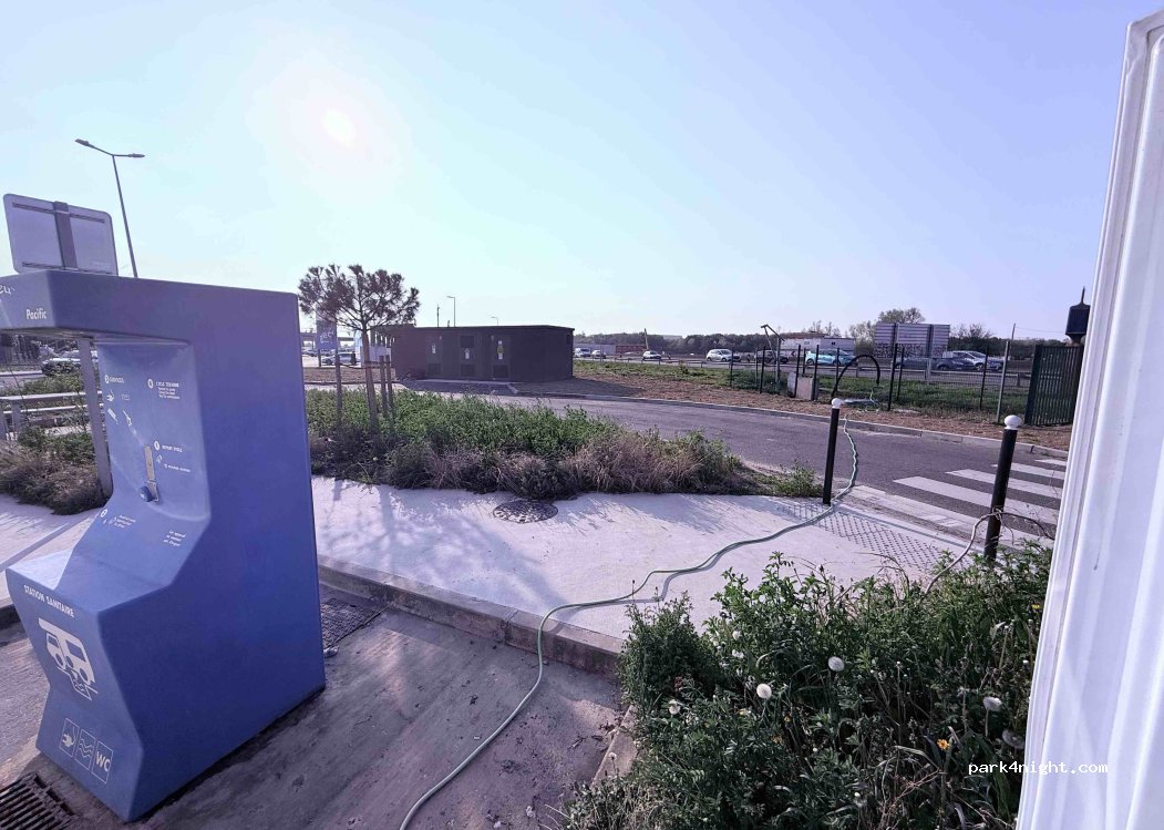 Hemos cargado agua, aunque estaba todo un poco dejado, la verdad. Aún así, es lo más cercano para cargar y descargar antes de entrar en Disneyland Paris. No hay muchas más opciones.