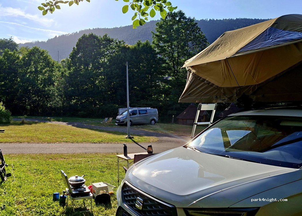 Un accueil super sympa, une route pour y parvenir (depuis metz) juste incroyable avec nombreuses biches et hiboux, des villages typiques et des forêts alsaciennes. Emplacement plat, possibilité des vidanger eaux usées et WC, sanitaires propres et bien entretenus, machine a laver… moins de 25€ pour 4personnes avec elec. Resto à côté très bon mais ne sert plus a partir de 20h…