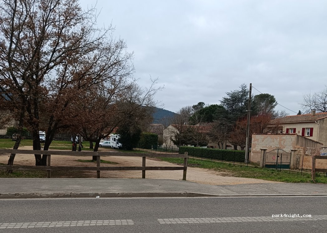 Parking in front of the earthen stadium, accessible to heavy goods vehicles (I returned with my 12 m). The municipal police authorize preferably by standing at the bottom to the left of the parking lot to be less disturbing. Quiet night, shops, bins and Sunday morning market nearby.
