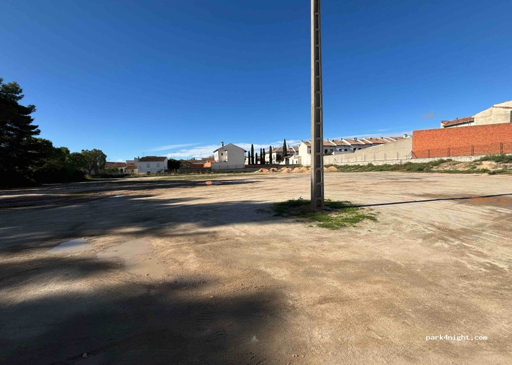 Grand parking plat en terre, sans services. Près de la Guardia civil. Proche du centre. Jolie petite ville à visiter absolument. Nuit calme.