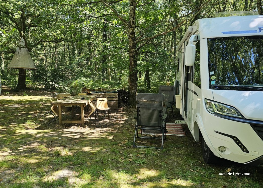 Voilà une bonne étape sans vis a vis dans la forêt ombragé quand il fait chaud,un propriétaire accueillant,le calme de belles balades. il faut être autonome, pas de TV