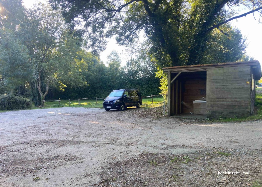 2 ou 3 CC si bien garés. Joli petit parking au calme facilement accessible . Proche centre centre petit bourg sympathique. Merci à la commune pour ce bel endroit, gratuit et très propre.