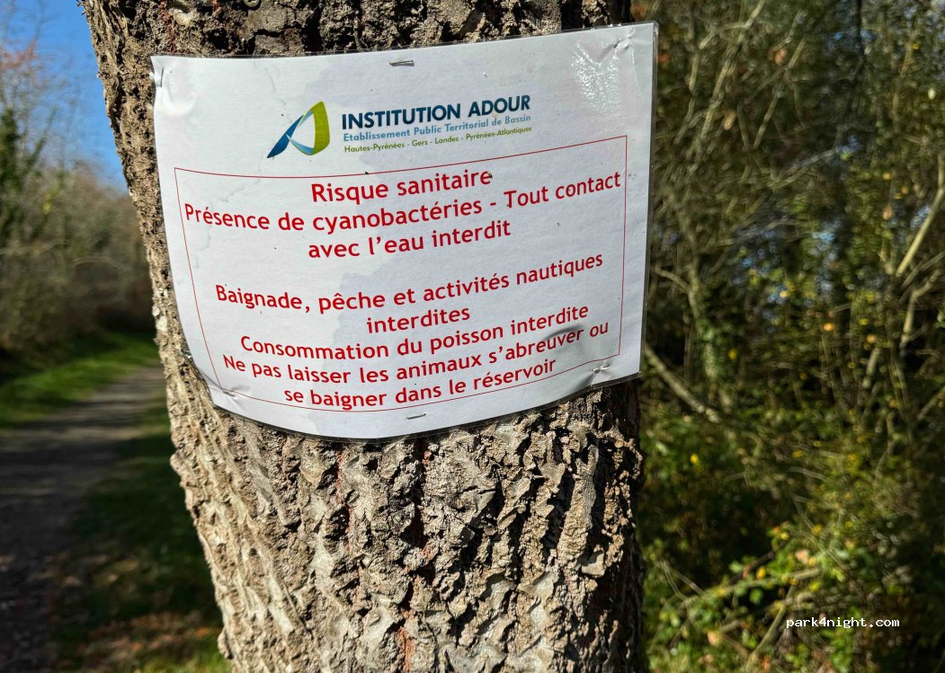 Accès impossible ce jour 7 novembre 2024 à cause de travaux de voirie menant au parking et pêche interdite actuellement pour cause de pollution cyanobactéries