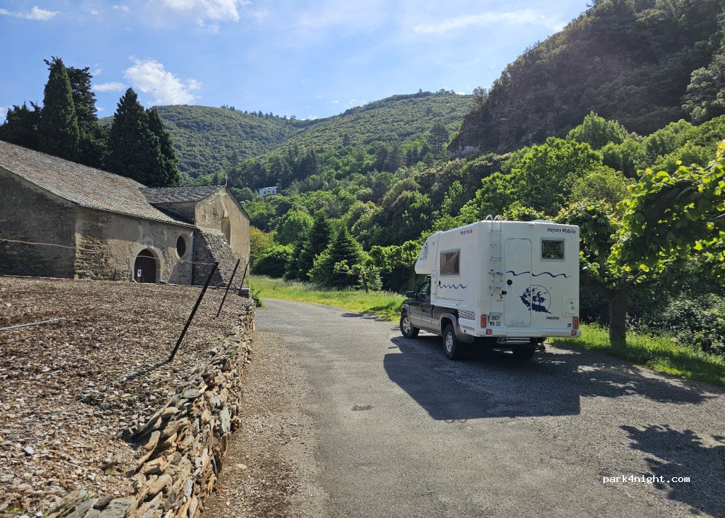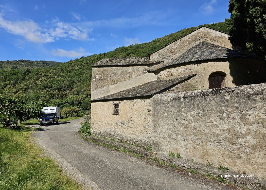 Nice location next to the village church with picnic table by the stream and water at the cemetery. The residents are friendly and calm. Access when arriving at the village take the small road on the left which leads to the church very narrow road only accessible to small trucks (we traffic L2h1 ok)