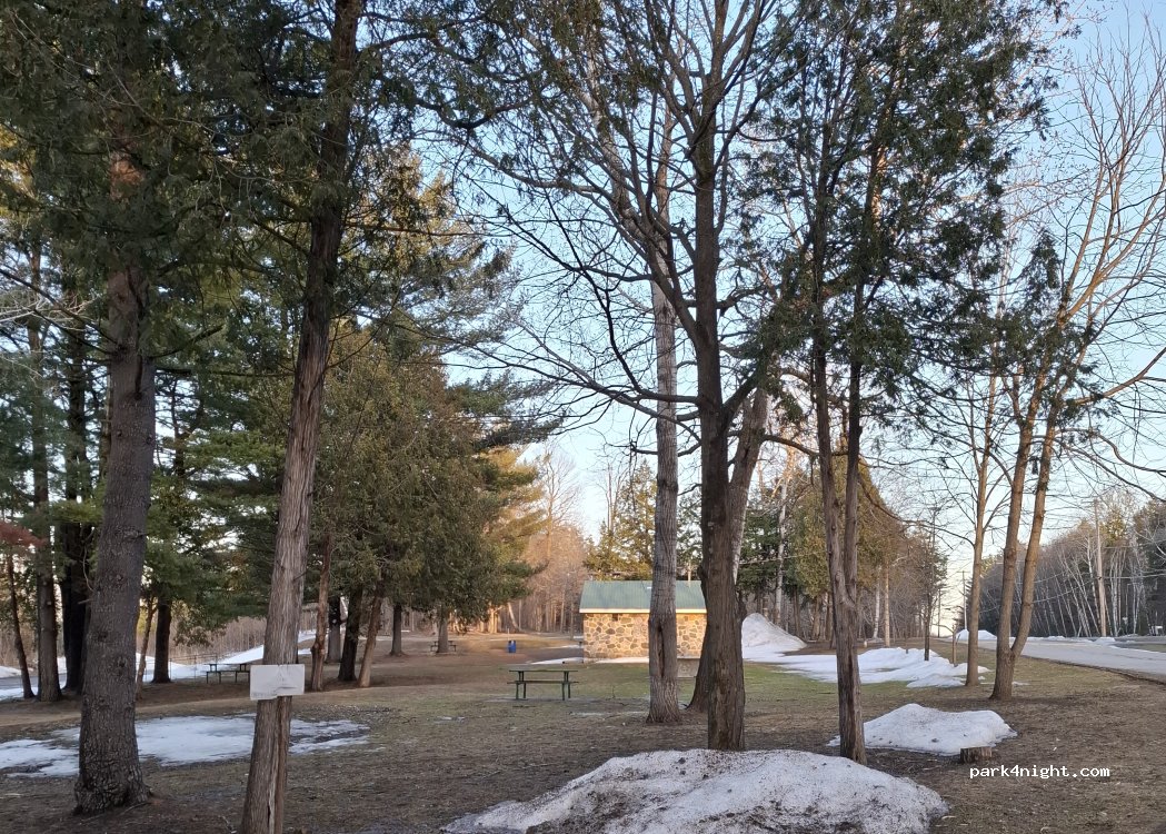 Tranquille et plusieurs espace! La seule toilette que j’ai trouvé était la toilette sec à l’entré du sentier et elle n’étais pas entretenu. À côté de l’autoroute donc du bruit un peu mais sinon on a super bien dormi.