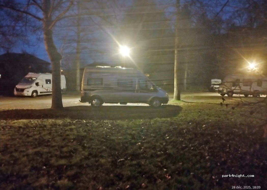 Super nuit, très calme, parking très plat goudronné et les arbres commencent à faire de l'ombre. Jeu pour enfants juste à côté ainsi que les commerces. Sympa merci Monsieur le Maire. Dommage qu'il n'y ait pas d'eau gratuite.