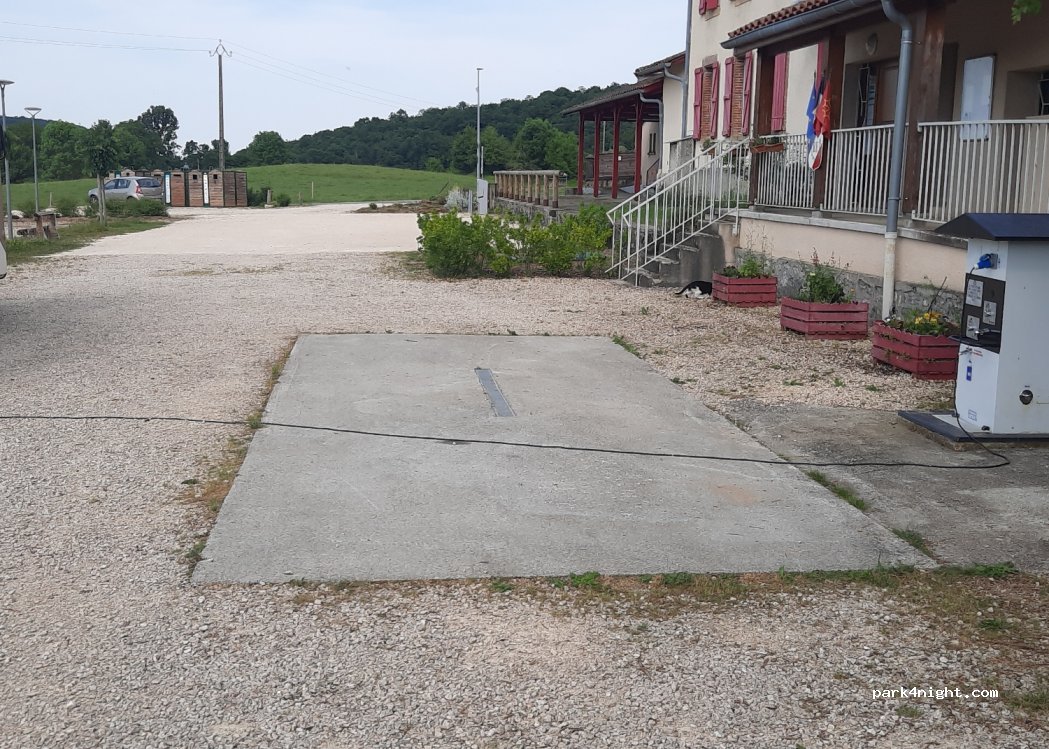 superbe petite aire 3 ,4 ,places. plate devant la mairie,et les champs,eau vidange et même une prise électrique gratuite ,jeux de boules ,table pic nique calme,éclairée 3cc ce jour à recommander un grand merci à la municipalité