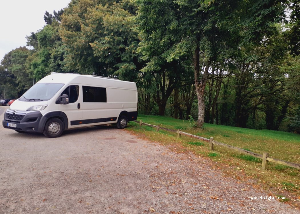 Along a road, but also against a wooded park with great walks and rides. On bus route 89 with stops under 100 m away which is handy to get around. Shaded under the trees. No services, but great spot.