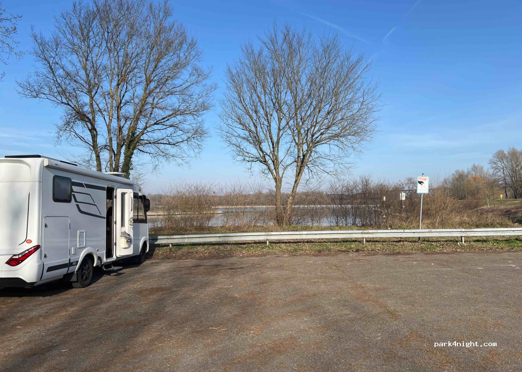 Großer ruhiger Parkplatz, am Abend leer, da am Ende einer Straße! Nur von Iffezheim erreichbar!