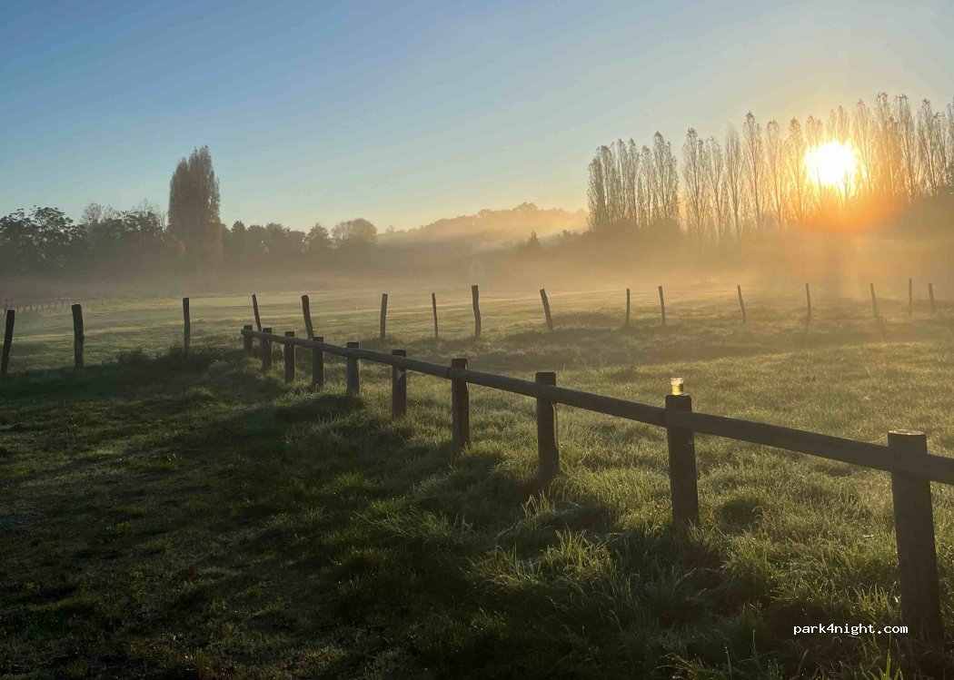 Nous avons stationné dans le grand champ juste en face. Beaucoup de place, très tranquille et au pied du point de départ de montgolfières, magnifique au coucher du soleil. Des vélos et piétons qui empruntent la voie verte mais assez loin quand on est garé au fond du champ. on entend de loin quelques trains à partir de 8h30 mais vraiment pas gênant. Un bon spot pour une alte d'une nuit