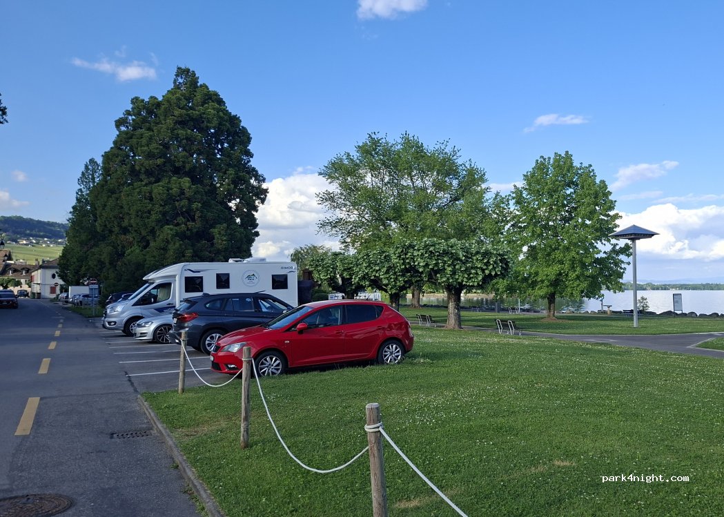 Nous avons dormi ici 1 nuits, la police est passée et n’a rien dit malgré notre cc de 7m30 nous avons bien dormi avons fait de belles rencontres et la baignade est au top. Des jeux à proximité. Top notre coup de cœur de la suisse