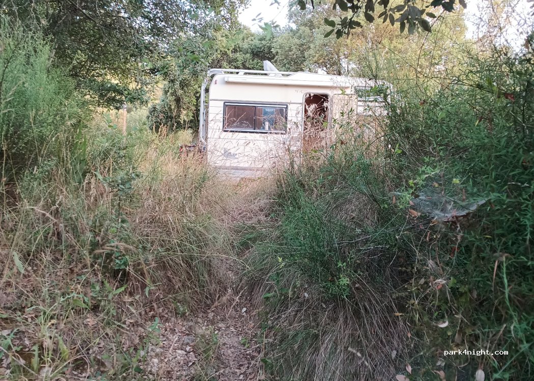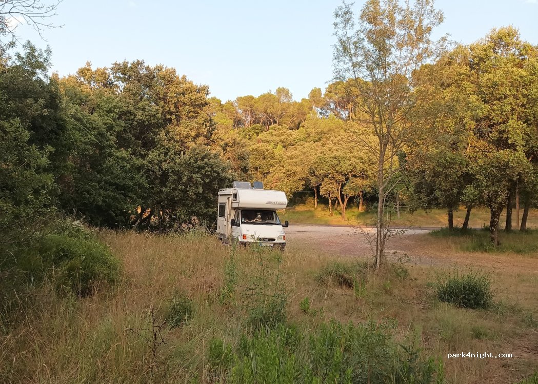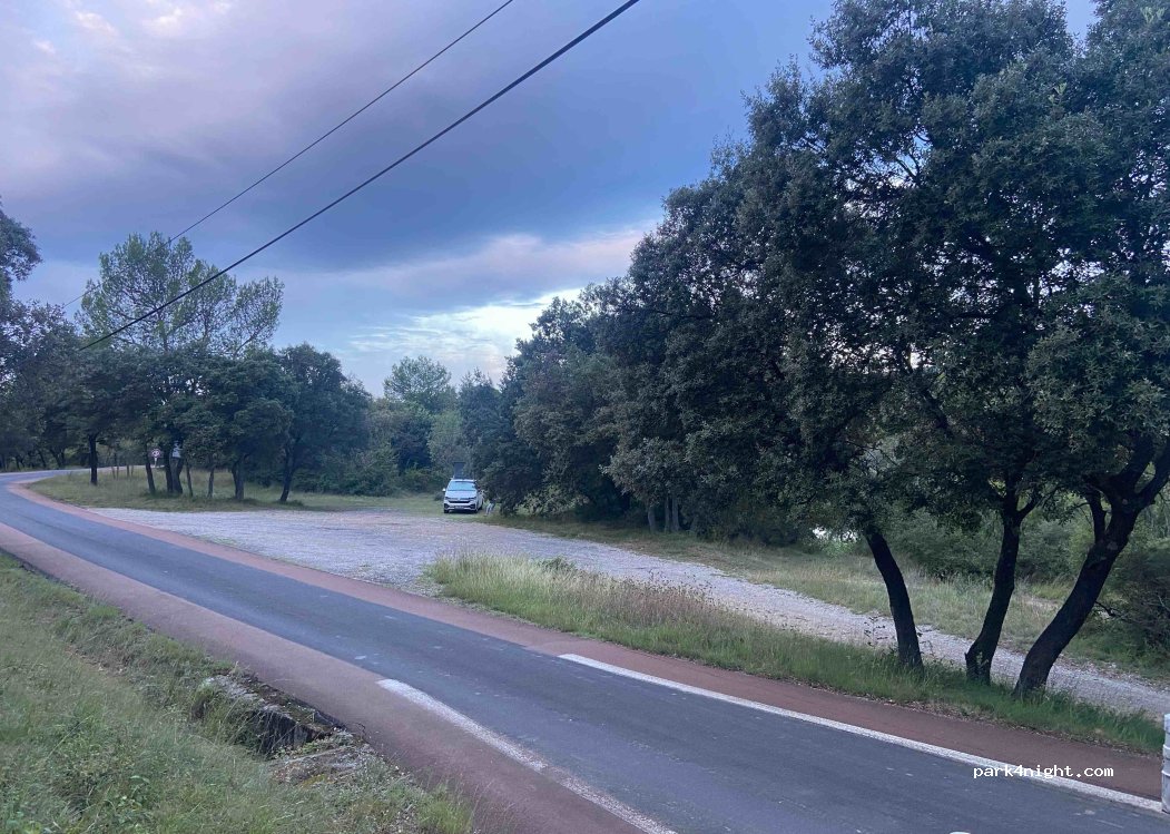 Parking on the side of the road. Quiet at night. We were lulled by the song of the birds and the croaking of the frogs. A little shade. Medieval village of Matelles 1/2 hour walk.