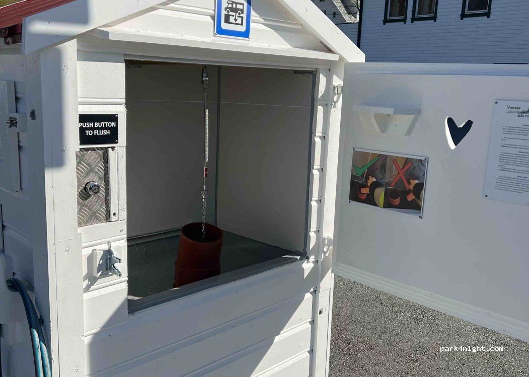 Wunderschöner Stellplatz mit Strom (direkt bei jedem Stellplatz); bei Ankunft um 15:30Uhr waren wir die einzigen (es gibt 6 Plätze mit Betonterasse pro Stellplatz und nochmals ca. 6 gleich daneben auf Schotter) man steht in 1. Reihe am Wasser neben dem Hafen; 210 NOK in bar in die Metallbox bei Bootrampe bezahlt; keine Entleerung der WC-Kassette möglich, sonst 5 Sterne; jederzeit gerne wieder!