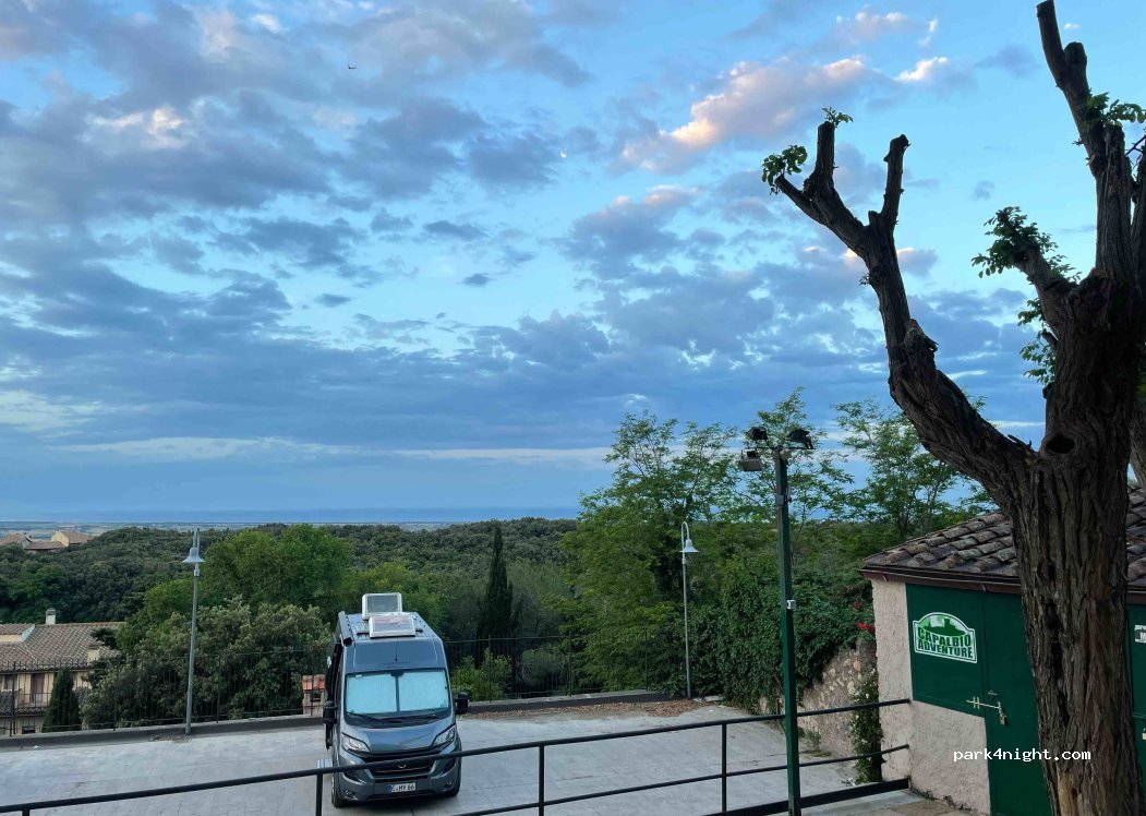 Parcheggio comodo per visitare il bellissimo borgo. Durante il giorno è parecchio utilizzato anche da auto. Per uscire attenzione ai rami che sono davvero molto bassi. Meglio uscire dall'entrata. Non saprei com'è la notte perché non ci siamo fermati a dormire lì.