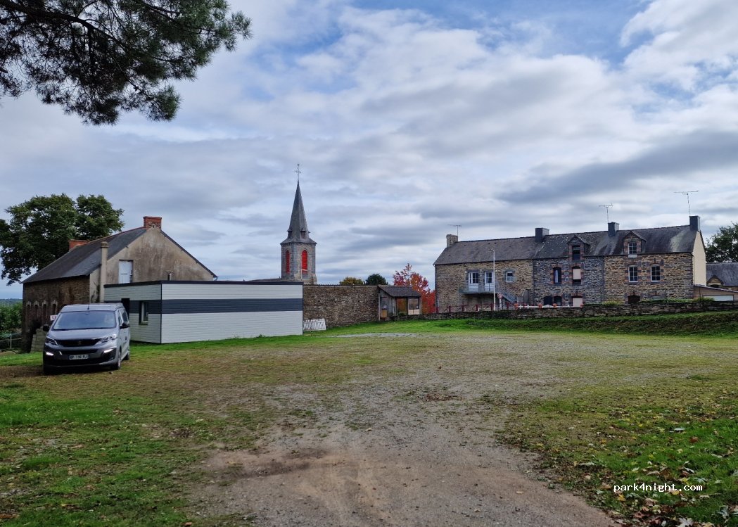 Terrain plat derrière la salle communale possibilité de plusieurs camping car toilette sèche distributeur de pain a proximité stationnement limité à 72h