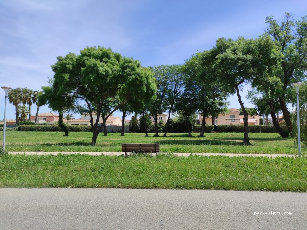 Parkeerplaatsen langs een weg en huizen (lange voertuigen ok als er geen auto's zijn). Handig om naar het natuurgebied Méjean te gaan (te voet of met de fiets) want verderop staat een slagboom. Bankjes en frame best aardig, we hebben niet geprobeerd te slapen. Neem niet alle plaatsen in om een parkeerplaats voor bewoners te verlaten.