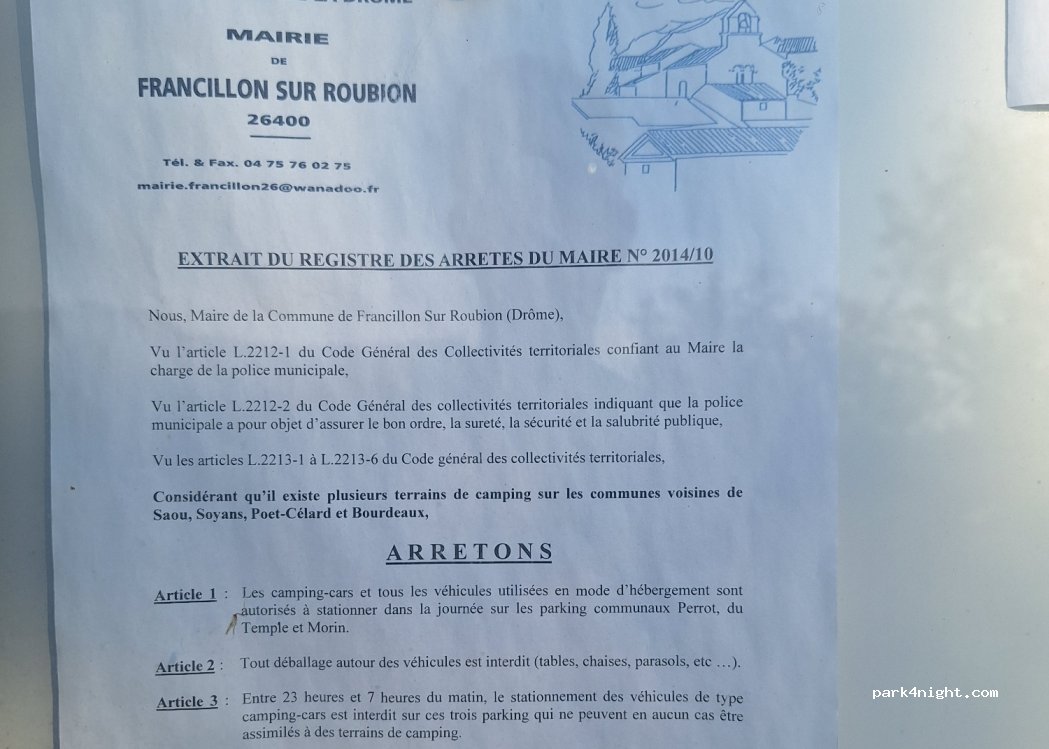 Comportement perverse de la commune qui a affiché dans une toute petite vitrine à l'extrémité du parking un arrêté municipal de 2010 qui a interdit le stationnement des camping-car entre 23h et 7h