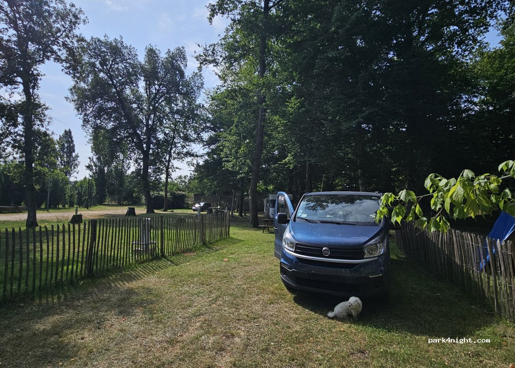 halte d'une nuit à moins de 9€ seul en fourgon.., accueil sympa, place ombragé, accepte les chiens, possibilité de raccordement à l'électricité, à deux pas du petit centre avec commerce essentiel, joli petit château à visité et chemin de balade, bref.., parfais pour un stop-étape..!