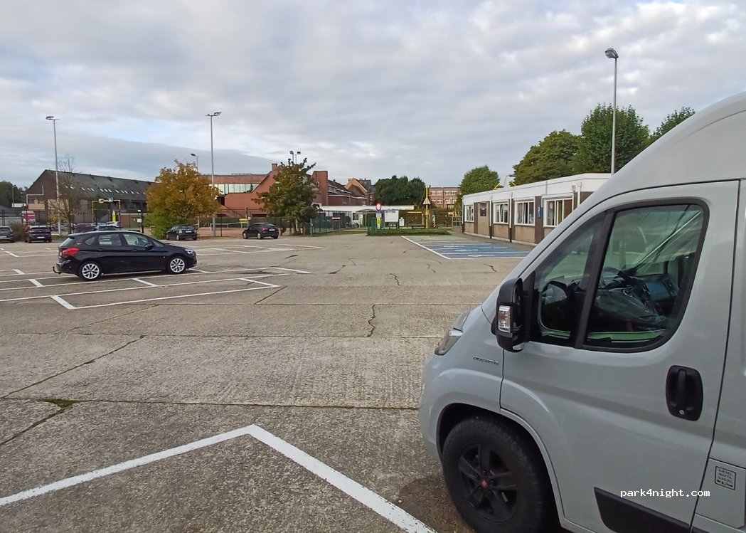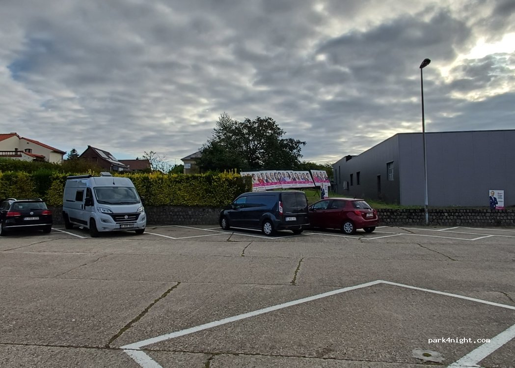 Gewone autoparkeerplaats, perfect voor een tussenstop. Rustig gedurende de nacht, echter is deze parkeerplaats gelegen aan een drukkere baan, gelegen vlakbij een school. 2 grootwarenhuizen op wandelafstand. Geen voorzieningen, echter kan u mogelijks gebruik maken van het sanitair van de sporthal tijdens de openingsuren.