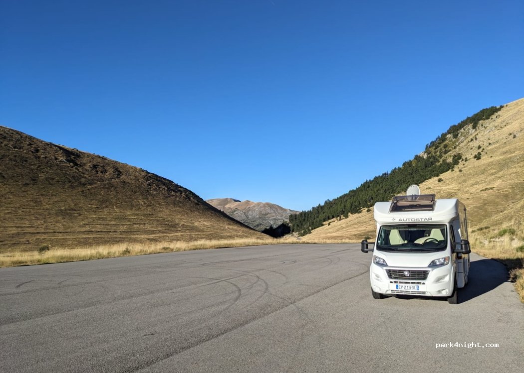 Endroit très tranquille, pas un chat à cette période à part des oiseaux. Ce n'est pas la place qui manque. Il n'y a pas de vue, car encaissé entre deux sommets, mais en gravissant la pente au nord (20 minutes) on bénéficie d'un panorama à 360° sur les reliefs montagneux de la région. Un peu frisquet le matin, car on est à 1600m d'altitude.