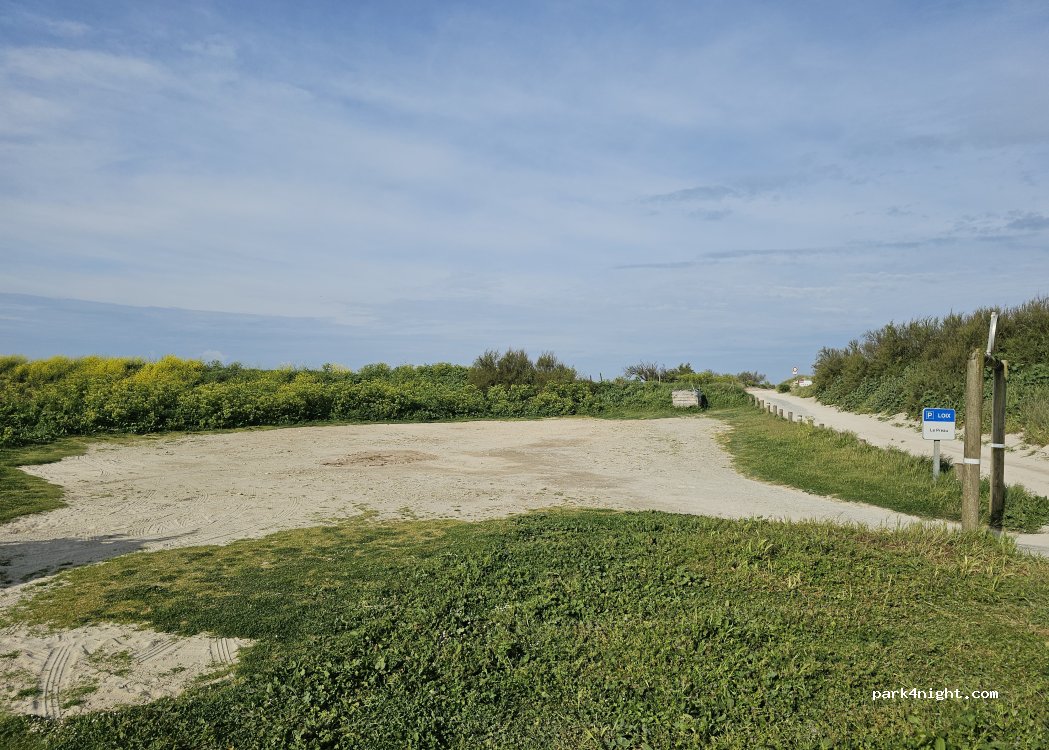 Parking sauvage très tranquille ; cadre sauvage . Nous étions 6 vans (barrière 2.10m) a 50 m de la mer quasi personne à cette saison . Pistes cyclables pas loin ainsi que cabanes à fruits de mer ; nous reviendrons sans problème. Aucun point d’eau