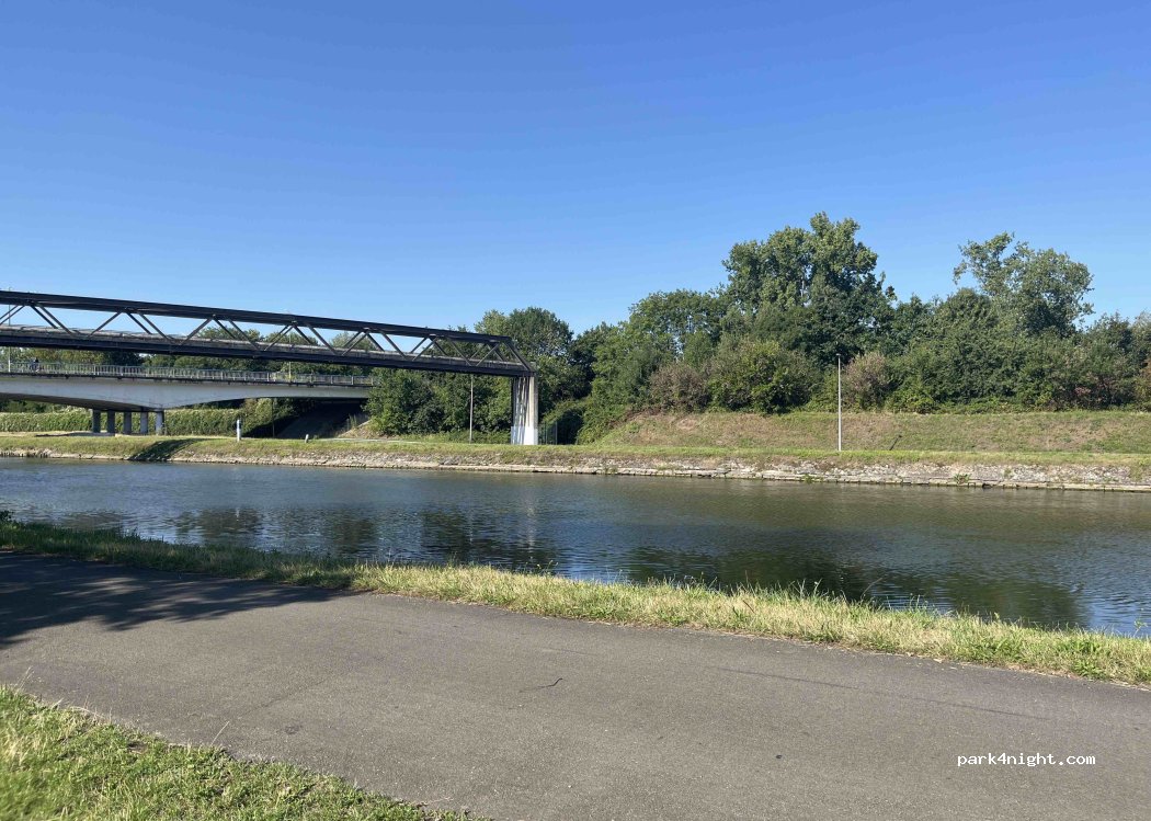 Einige Parkplätze direkt am Kanal. Gut für Pause und Fahrradtour. Nicht ganz ruhig, da Straßen in der Nähe.