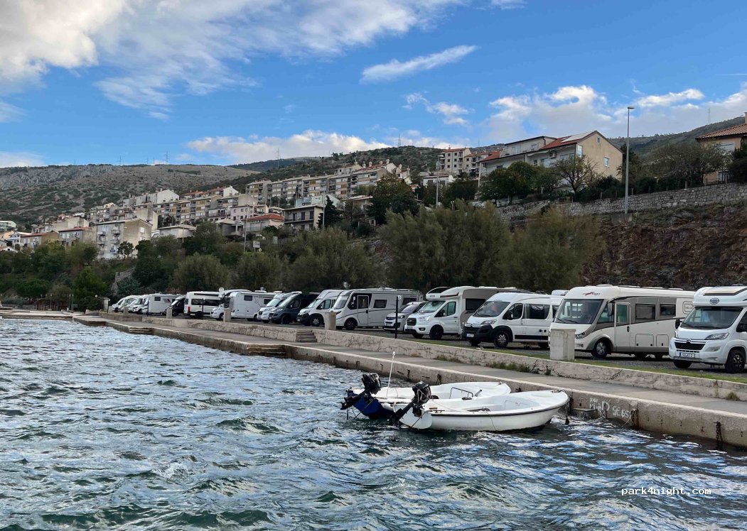 Super aire bord de mer un peu chère 33€ mais raisonnable pour la croatie au je trouve que les aire et les camping sont extrêmement chère !! avec électricité wifi capte que jusqu’à la moitié de aire , sanitaire à revoir , bien pour faire un arrêt .