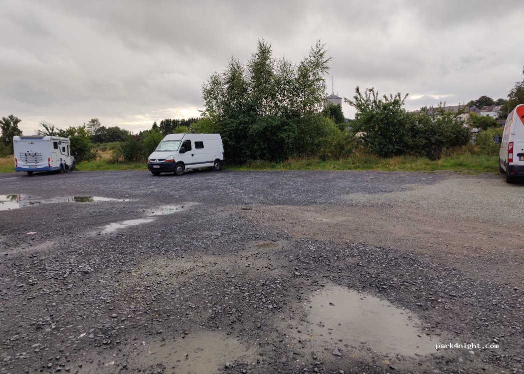 rustige parking nabij het centrum en oud treinstation met fietsverhuur ondergrond gravel. de officiële mh parking is ook gratis maar zeer druk
