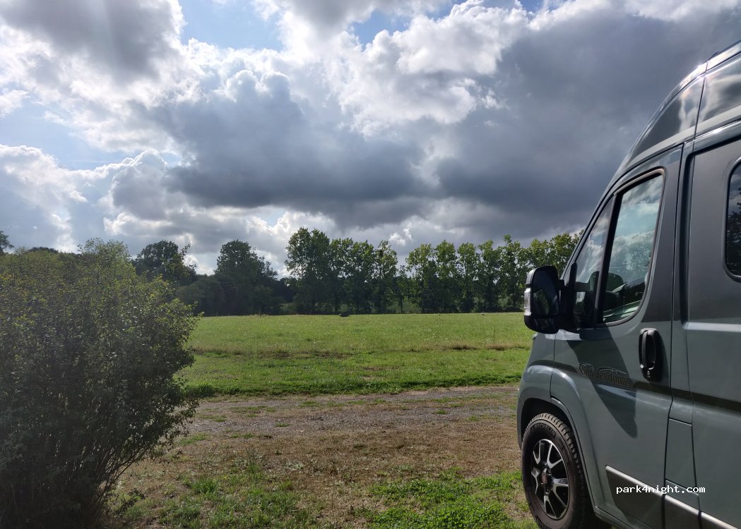 Un endroit paisible à la campagne avec vu sur les champs, le seul chant des oiseaux pour nous accompagner. 1000 fois mieux que les grandes aires ! Le tout pour 10€ ! Un grand merci aux propriétaires de nous avoir ouvert leur petit coin de paradis !