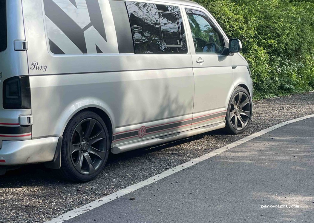 Kleiner schöner Parkplatz mit 2m Höhenbegrenzung. In der Nähe Eingang zum Wasser zum Kayaken.